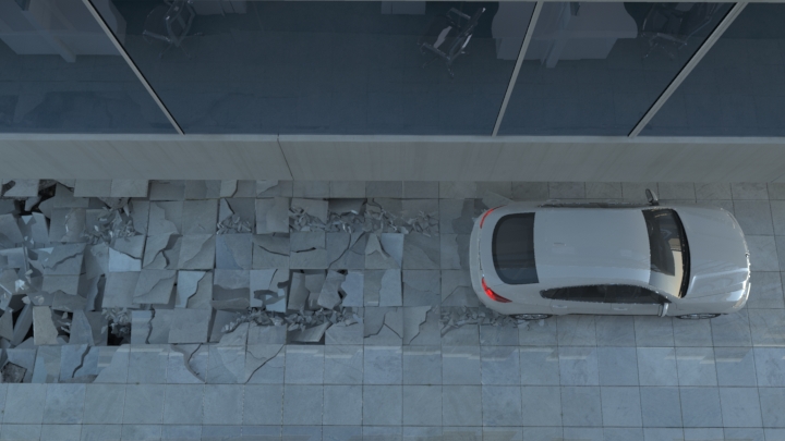 Hola Acortes, ¿Qué tal? Hay escenas que te han salido de arte, como la que salen los bolardos en primer plano. En cuanto a la rotura por compresión del BMW, hay zonas donde el pavimento sube al romperse, cuando no debería hacerlo, aunque ese efecto se produce en 2 tomas puntuales.