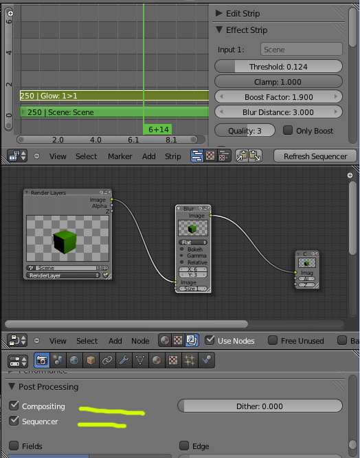 Hola, tengo un problema al cual ya me canse de darle vueltas, verán: Quiero agregar un efecto de ruido a unas imágenes que ya tengo y que cargue en el secuenciador de Blender, para ello selecciono los botones de do sequence y composite, agrego los nodos, pero no me aparece la secuencia de imágenes a las cuales les quiero dar el efecto. Solo me funciona si tengo el botón de composite activado y eso no me sirve puesto que quiero agragarselas a la secuencia de imágenes.