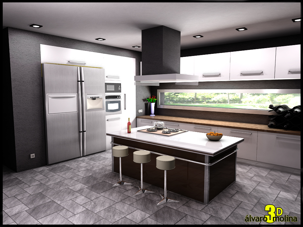 Hola a todos. Aquí os dejo mi último trabajo, una cocina. Realizada en 2 tardes, con renderizado total en Mental Ray y con su apropiado retoque en Adobe Photoshop.