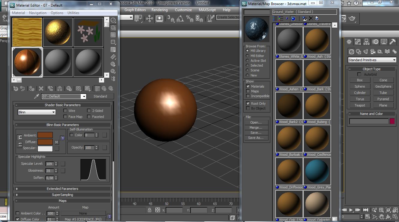Cuando hago cualquier cosa (una caja mismamente) voy al editor de materiales para ponerle algún material, mismamente uno de madera que sale nada más entrar y me sale la tabla del material, y hago como en el manual este que tiene el Autodesk te sale como asignar materiales. Pincho en el círculo de la derecha de la tabla y arrastro hasta lo que quiera cambiar de textura (la caja) y no me deja. Luego busco otra librería de materiales y cualquiera que saco somos me salen las esferas con un color y brillo si acaso tienen, vamos que no me salen con la textura que me tienen que salir. Aquí os dejo una imagen para que veáis un poco lo que os he dicho. Bueno lo de la madera lo entendí no se pueden aplicar (*.jpg) de golpe a una figura hay que ponerlo en Diffuse color me parece, pero vamos que me sigue persistiendo el problema de que no se me aplican bien las texturas.