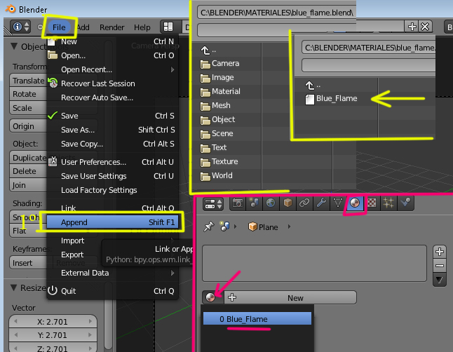 Primero debes de añadir la textura en el blend que estas. Haces un file > append y buscas la carpeta dónde tienes el material y seleccione en la carpeta de material el nombre de ese material.