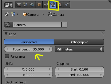Para lo de la cámara si te refieres al Focal. Seleccionas la cámara y en properties > object data tienes los valores para cambiar el enfoque.