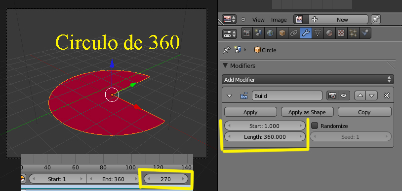 Luego añades un modifiers de tipo build y le pones el valor de fin a 360.