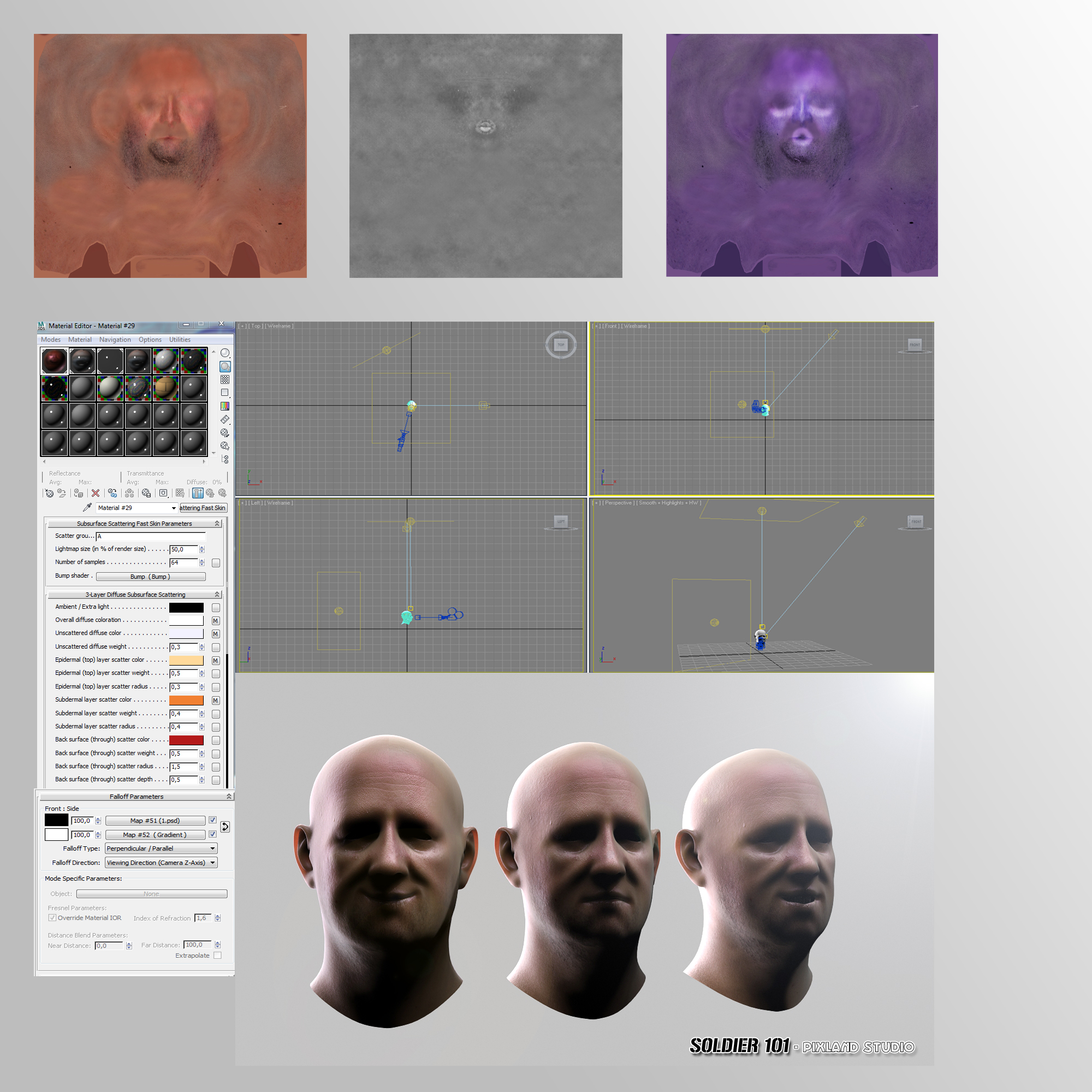 Las capturas con el modelo, están sin globo ocular, en Adobe Photoshop le di oscuridad para disimular esa zona, por eso os comento lo del tema del Shader y su iluminación.