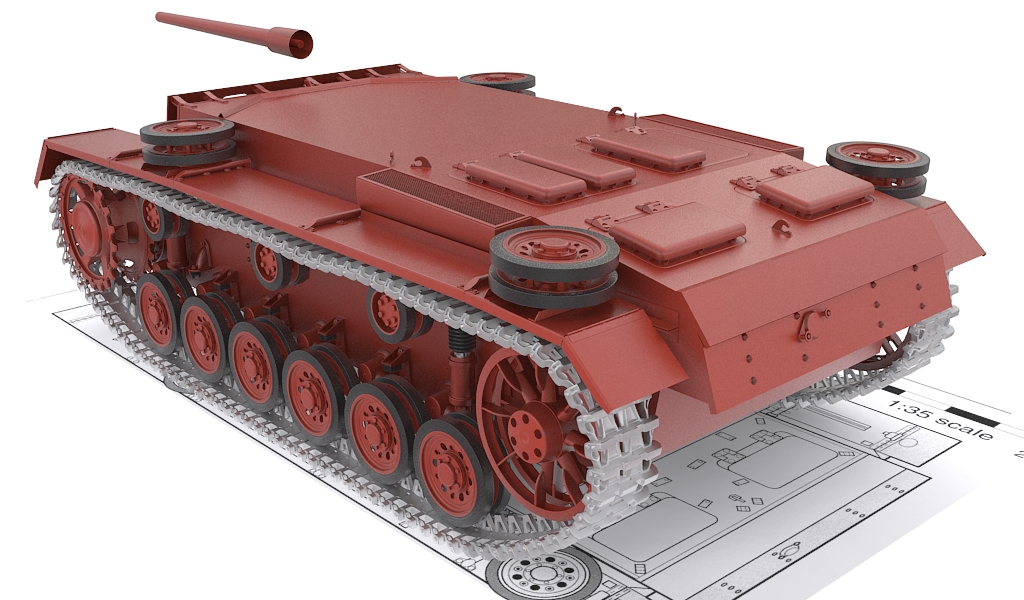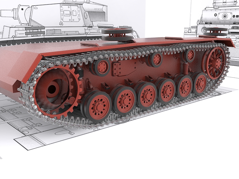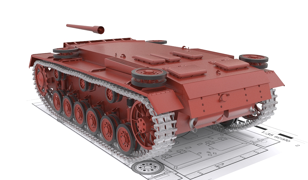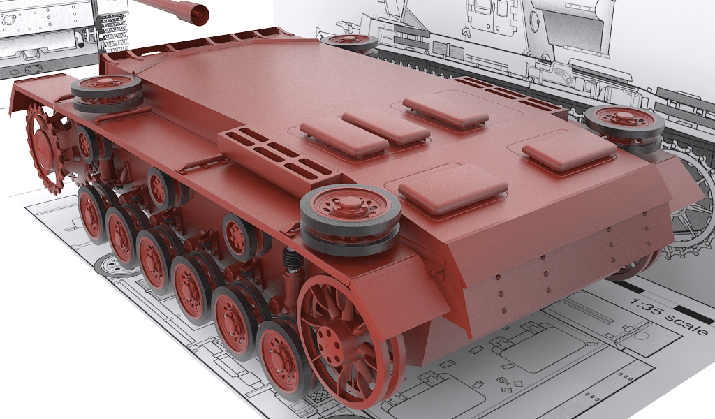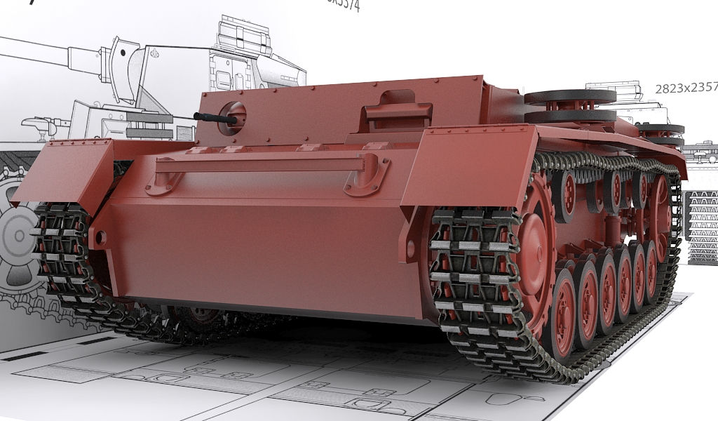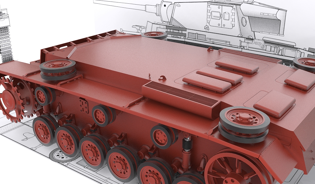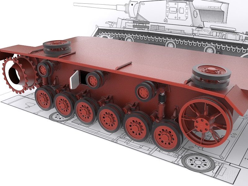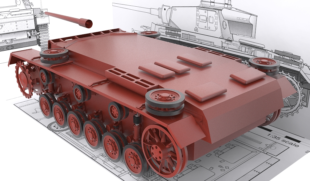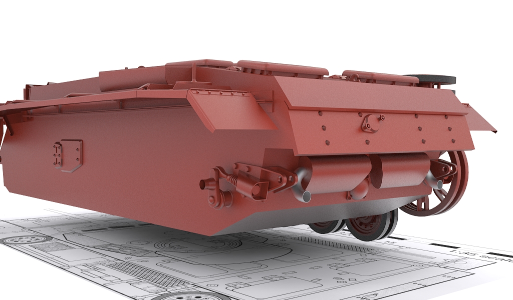 Respecto al modelado, no mucho, la forma básica de la torreta modelada y la plancha que cubre los tubos de escape.