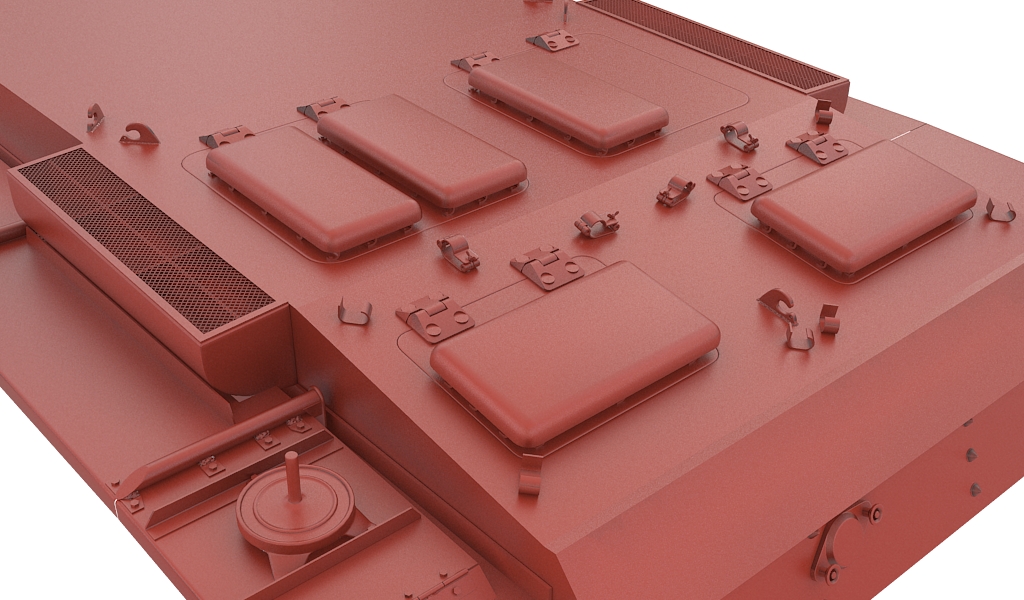 Torreta ==> tranpilla superior, trampillas posteriores (para las armas de mano), el baúl y dos enganches uno en forma de garfio y otro tipo eje bisagra o algo por el estilo.