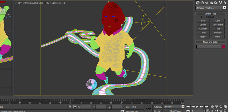 Sejob el cabello está hecho con Hair and Fur, use una malla con menos polígonos y se lo aplique, cambie las luces por unas normales, en el render teine Vray light, pero creo que no andan con el Hair and Fur, lulego lo monteo en Adobe Photoshop, siempre trato de sacarlo con capas separadas par luego cambiar el color si es que quiero.