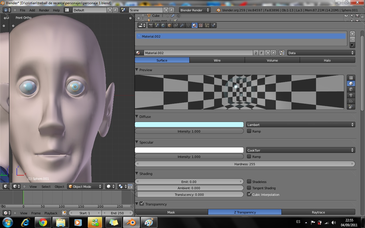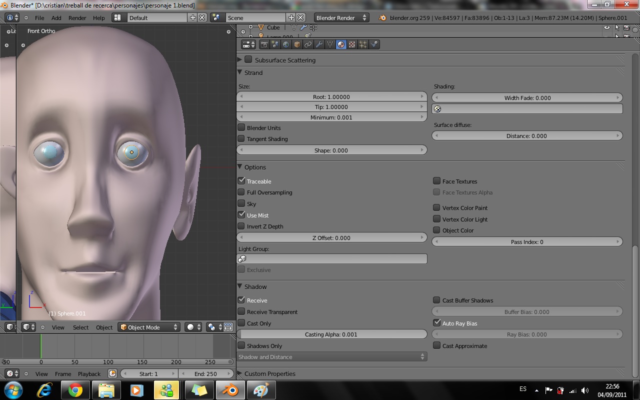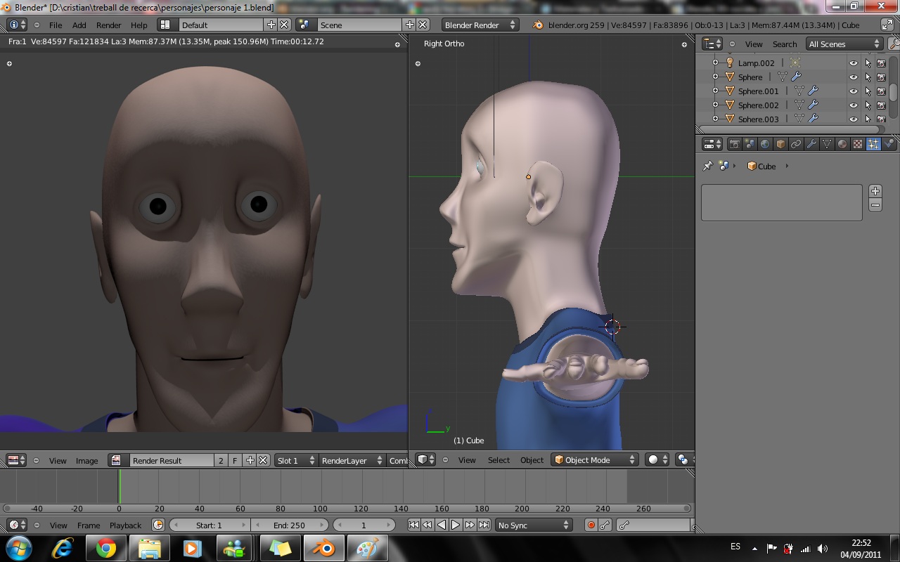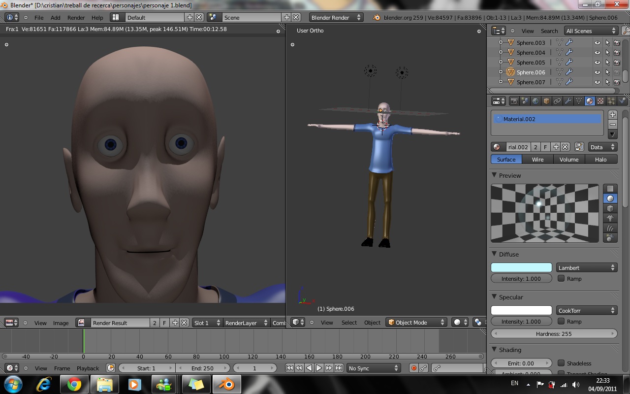 Si bueno mi trabajo va sobre el 3d aplicado en el cine y de práctica lo que quería decir era lo que tú dices al principio quería hacer un corto, pero luego me di cuenta que tenía que mejorar y bueno pues al final decidí hacer eso hacer ejemplos de animación y si me daba tiempo hacer una integración en entorno real bueno este verano he leído cosas para mejorar en cuanto al modelado y animación y ahora estoy leyendo Blender 2.5 character animation Cokbok a ver si me va bien el trabajo, aunque mi tutor pasa de mi u, por cierto, el personajetodavía no está acabado tengo mejorar cosas en Sculpt Mode, y tú ahora haces animación o algo de 3d?