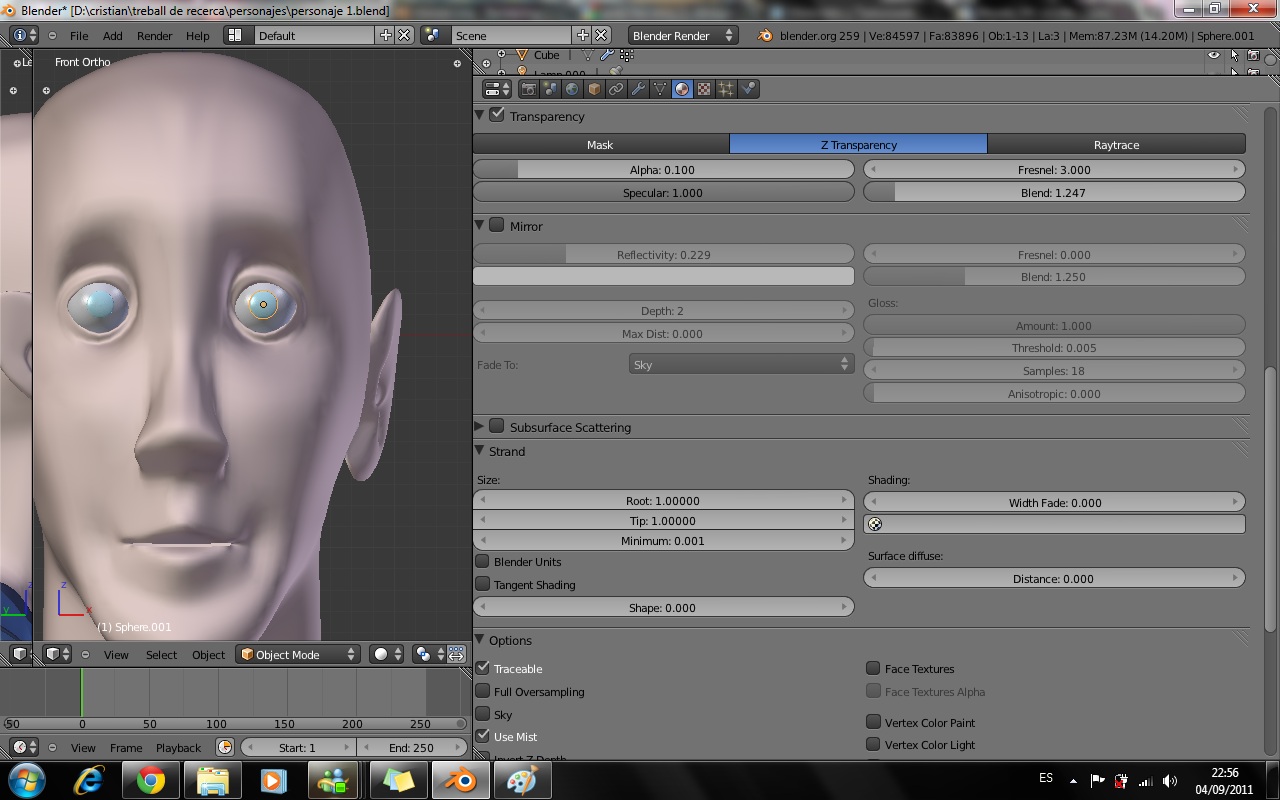 Al año siguiente aproveché lo que tenía hecho y cambié el objetivo del tr: realización de algunos ejemplos con Blender. Reduje mi parte práctica a una serie de ejemplos de animación (casi todo efectos especiales) y los adjunté con un CD, y me preparé a fondo la presentación oral. Saqué un 10.