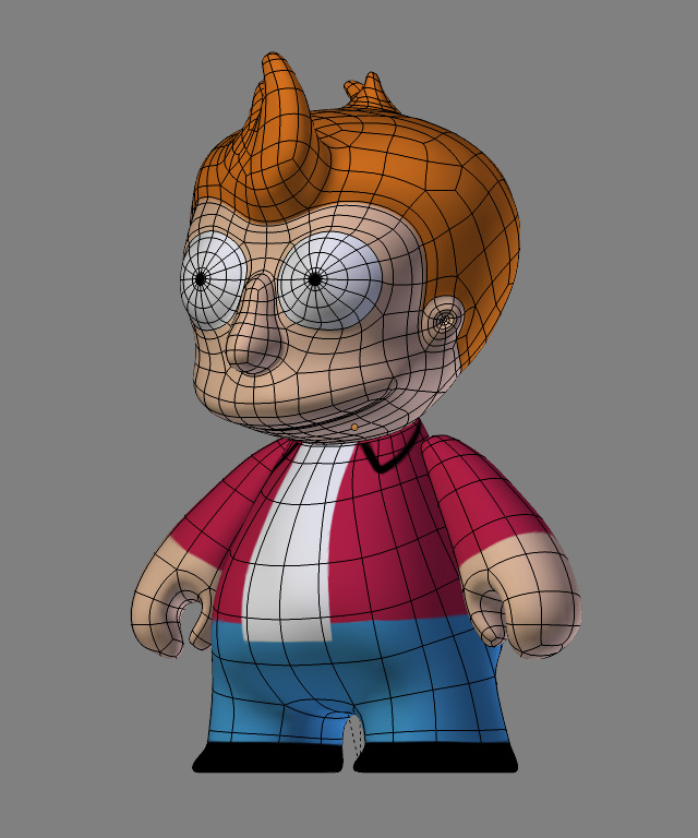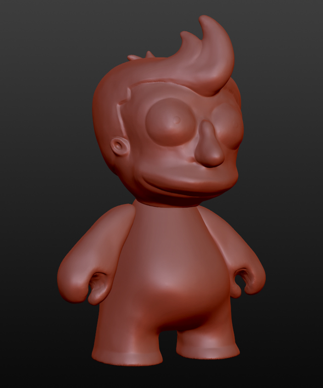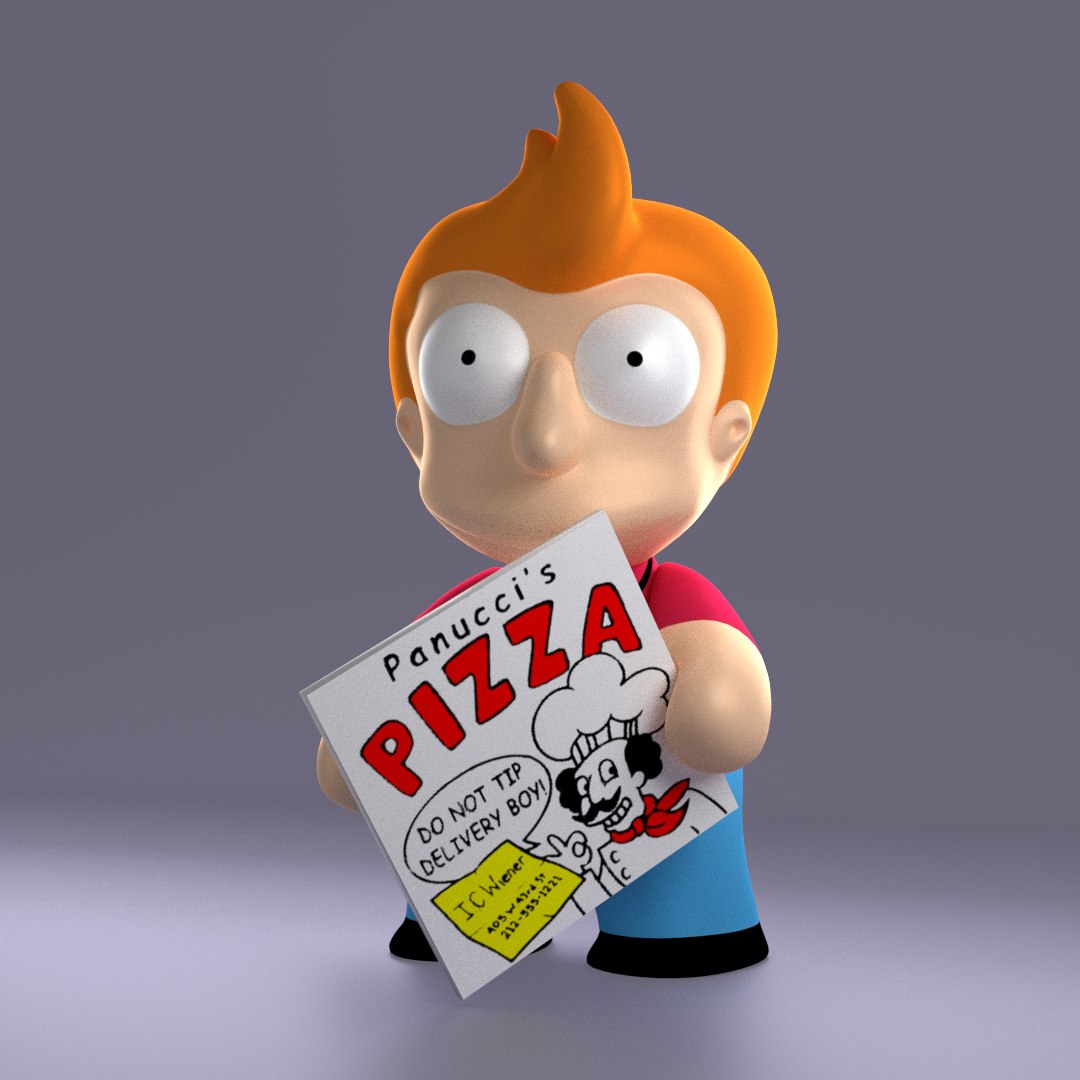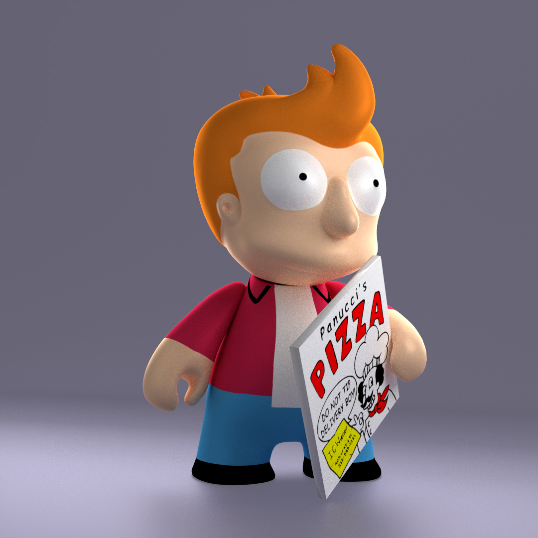 Quise hacer algo sencillo para practicar algunos conceptos, así que, recreé la figura del Fryrender de futurama de kidrobot que tengo arriba del escritorio. Lo hice esculpiendo a partir de esferas en sculptris, luego lo retopologicé en Blender, y lo rendereé con Cycles, proceso que puede verse en las imágenes que, adjunto.