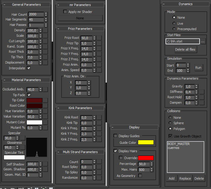 Re: Problemas de colisión con 3ds Max con hair and fur