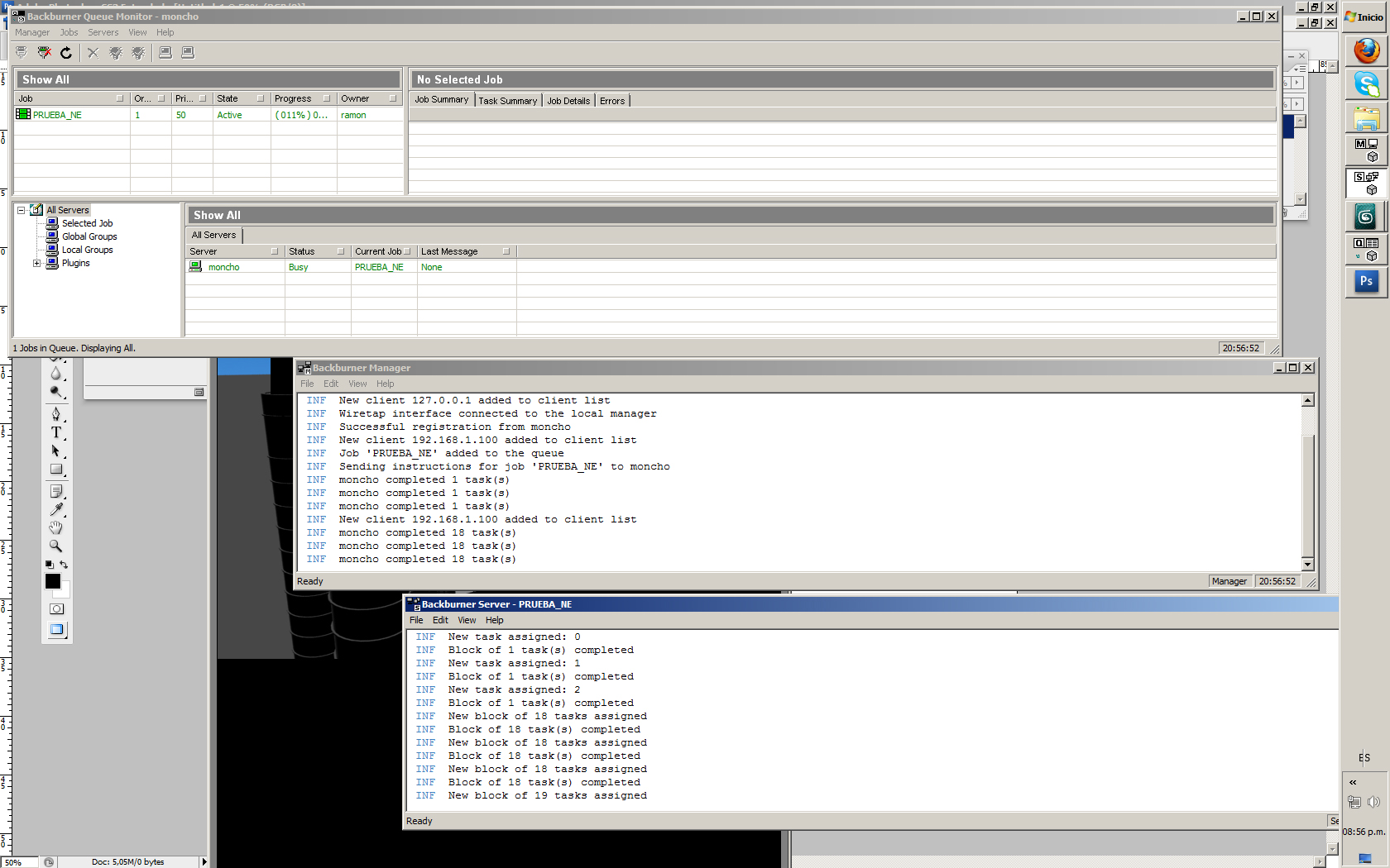 4/ir a programas=Discreet=Backburner y arrancar el monitor de cola, monitor.