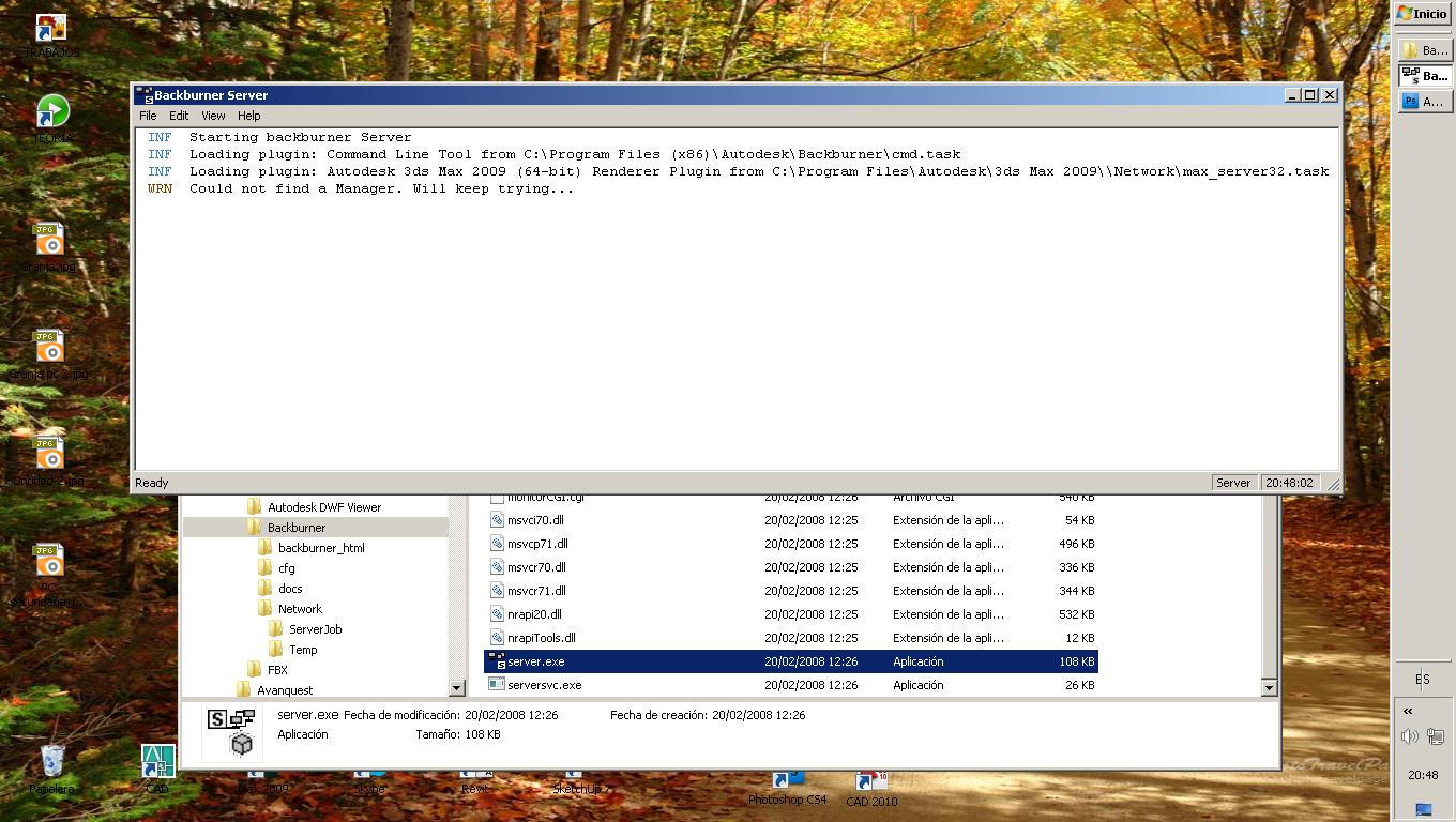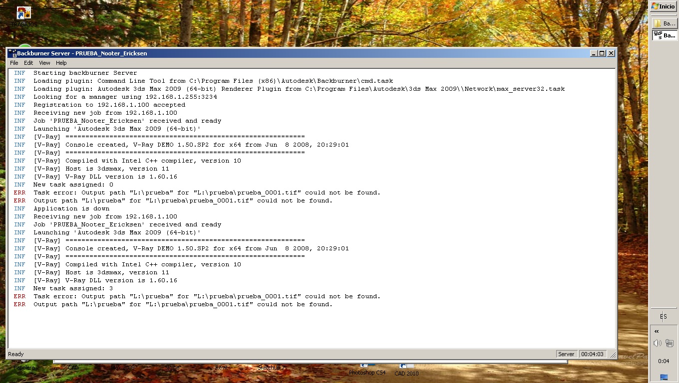 Hola Esteban: al principio los dos equipos aparecen como idle, hasta ahí todo bien. Después de un rato y no sé que procesos la máquina server (la secundaria o slave) dice que no puede encontrar un manager y que seguirá buscando. Y queda buscando. Después deun rato dice que no enocntro un manager y que da por apagado el 3dsMax en la máquina manager.