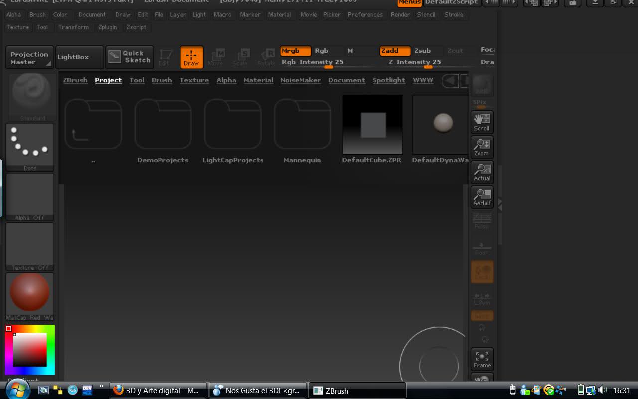 Hola buenas. He instalado ZBrush 4.0 r2. El caso es que la resolución o las dimensiones de la ventana del programa no se adaptan a mi pantalla, ya que se aprecia que no se ve completamente entero y hay botones u opciones del programa que no consigo ver o se ven a medias (o sobresalen por abajo o por arriba). He estado buscando para configurarlo, pero como acabo de iniciarme en el programa, no doy con ello. Ni por edit, file, preferencias.
