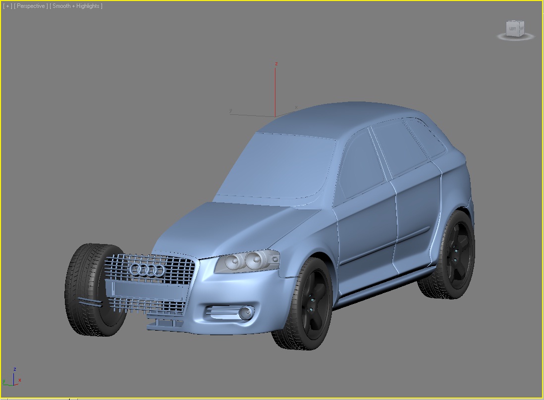 Debe ser por algún fallo mío durante la construcción. O quizá porque la rueda la hice en un archivo aparte y luego la importé. En cualquier caso, no me caliento más la cabeza, al fin y al cabo, es el primer coche que hago. Seguramente el próximo me saldrá mejor (espero).