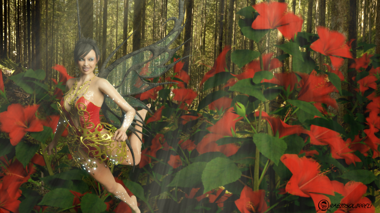 Hola ansem, el modelo de la mujer lo tengo hecho y riggeado, solo le cambie los Morphs en la cara. El resto si lo hice yo, la ropa, texturas, materiales y las alas. Los hibiscos don de mi librería. De hecho, no están en el mismo plano, los hibiscos están más lejos, pero por la escaba del hada uno puede confundirse. Saludos.