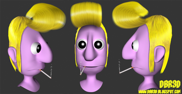 El objetivo era hacer un peinado con tupe y patillas con Hair and Fur en 3dsmax. La cabeza esta modelada con editpoly, el humo está hecho con partículas Super Spray y renderizado todo con Vray.