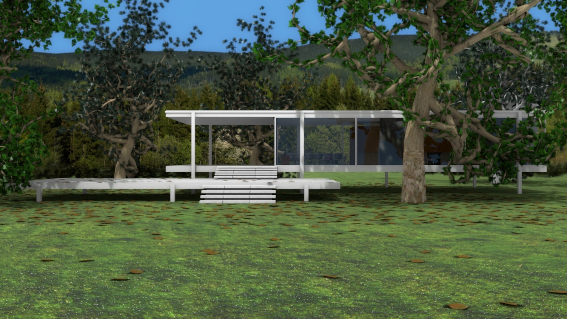 Casa para edith farnsworth. Creada por el arquitecto ludwig mies van der rhoe 1946-1951. Render: Blender interno árboles creados con ngplant.
