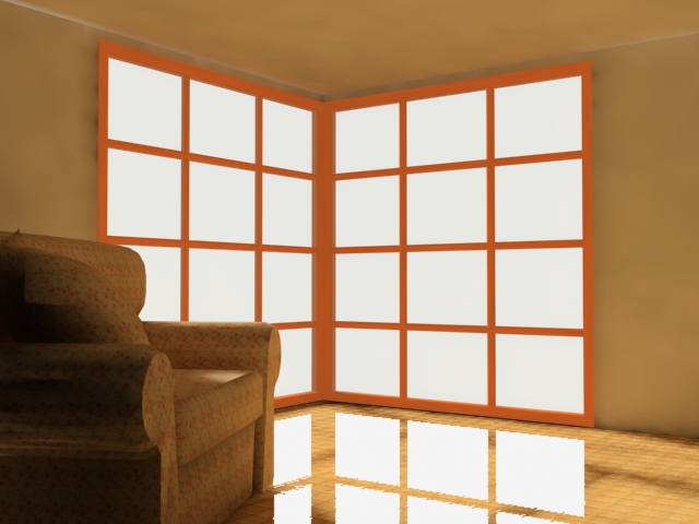 Hola, aquí publico una imagen echa con max 7, usando GI y radiosity, este último al 90%, con un tamaño de malla de 10, pero como pueden ver, tengo unas manchas oscuras en las paredes y un filtro de luz o color blanco en los bordes superiores de la pared.