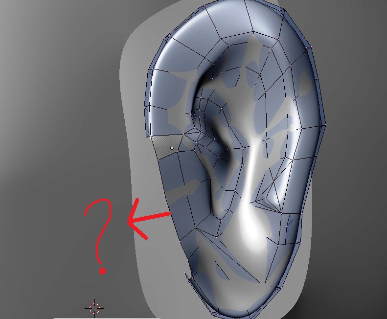 Ahora personalmente, yo simplemente haría un extrude de los vértices e la oreja y los metía dentro de la cabeza y ya está ni unir ni nada, es cutre, pero te ahorras problemas. Supongo que algún gurú del High Poly te podrá ayudar mejor que yo en esto.