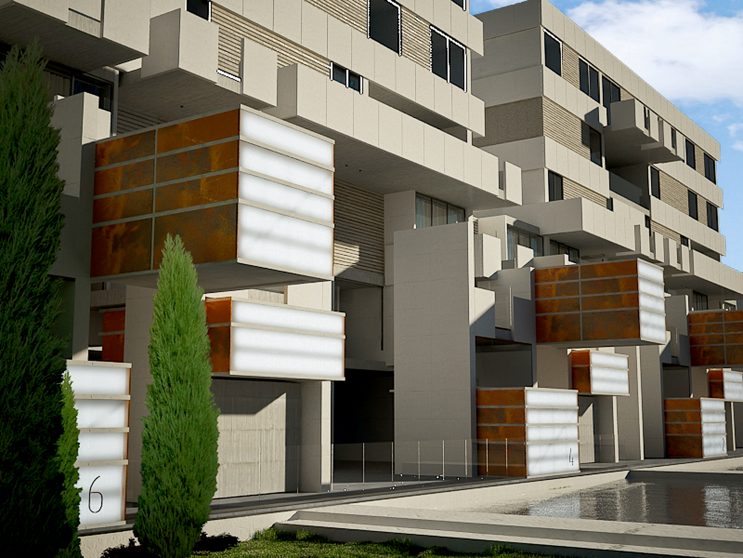Vaya, la verdad que sí, tienes unos problemas de nitidez en la imagen muy serios ¿exactamente que motor de render estas usando? Para poder aconsejarte. Creo que, si es max, el Scanline no tiene esos problemas, pero dudo si es Vray o Mental. Por cierto, el diseño del inmueble no me gusta nada, pero nada, siento ser sincero con su arquitecto, pero no lo veo yo mucho sentido práctico y estético, es como recargado por que sí.