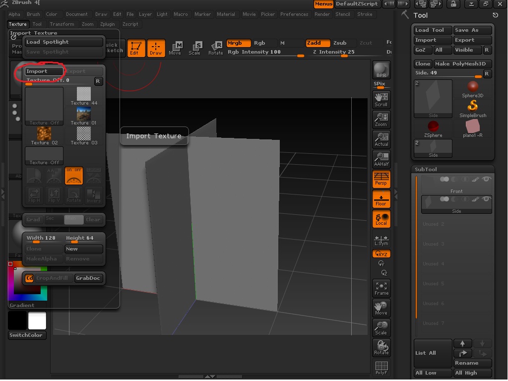 Se le ve la pata de palo a tu ZBrush, dale al botón import de la ventana de tool a la derecha, luego cancela y ya si te funciona todo.