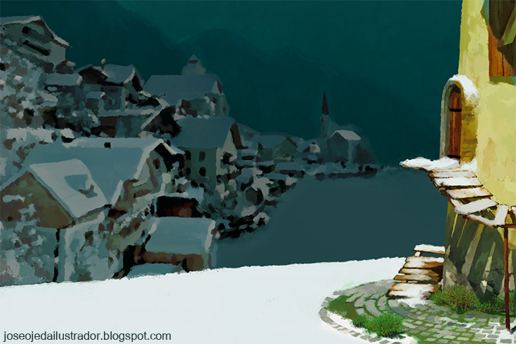 Gracias Reihzard, pues mira, el render esta texturizado y luego pintado encima, el ambiente y la nieve 100% dibujado, el resto de los materiales están retocados para ajustar la iluminación y el entorno. El fondo es dibujado completamente. Aquí muestro el render base con una iluminación muy básica.
