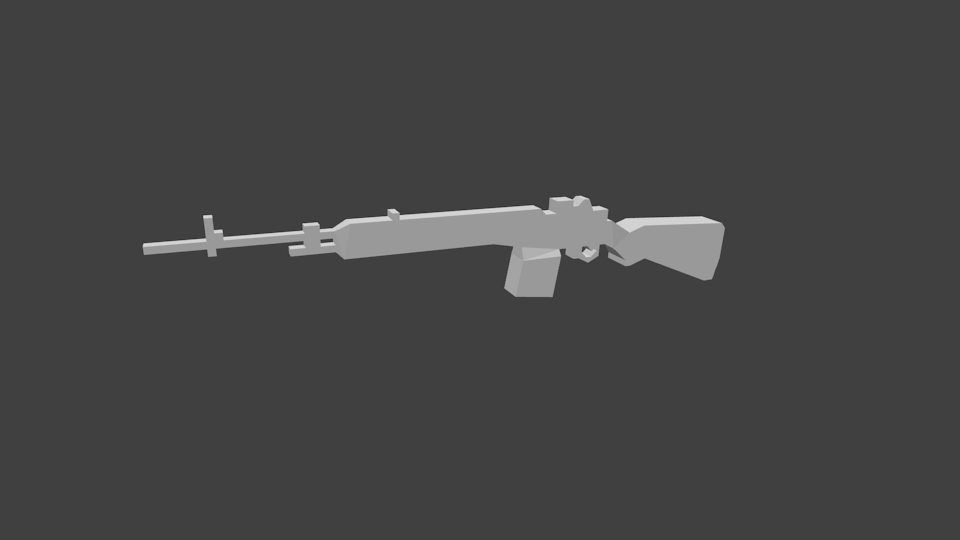 Bueno, soy nuevo en el foro, y hace un rato termine mi primer modelo 3d completo. Es una fusil m14, aún sin texturas y (a mi parecer) bastante Low-poly.