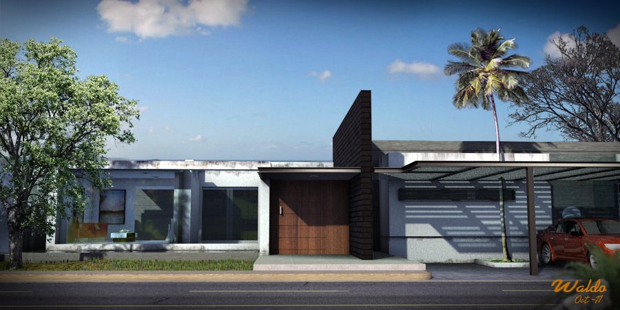 Me gusta mucho el acabado de la madera de la puerta de entrada, el tamizado de luz de la marquesina, el jardín delantero y aparentemente la suciedad de la pintura. Cuenta un poco como hiciste estas cosas xf.