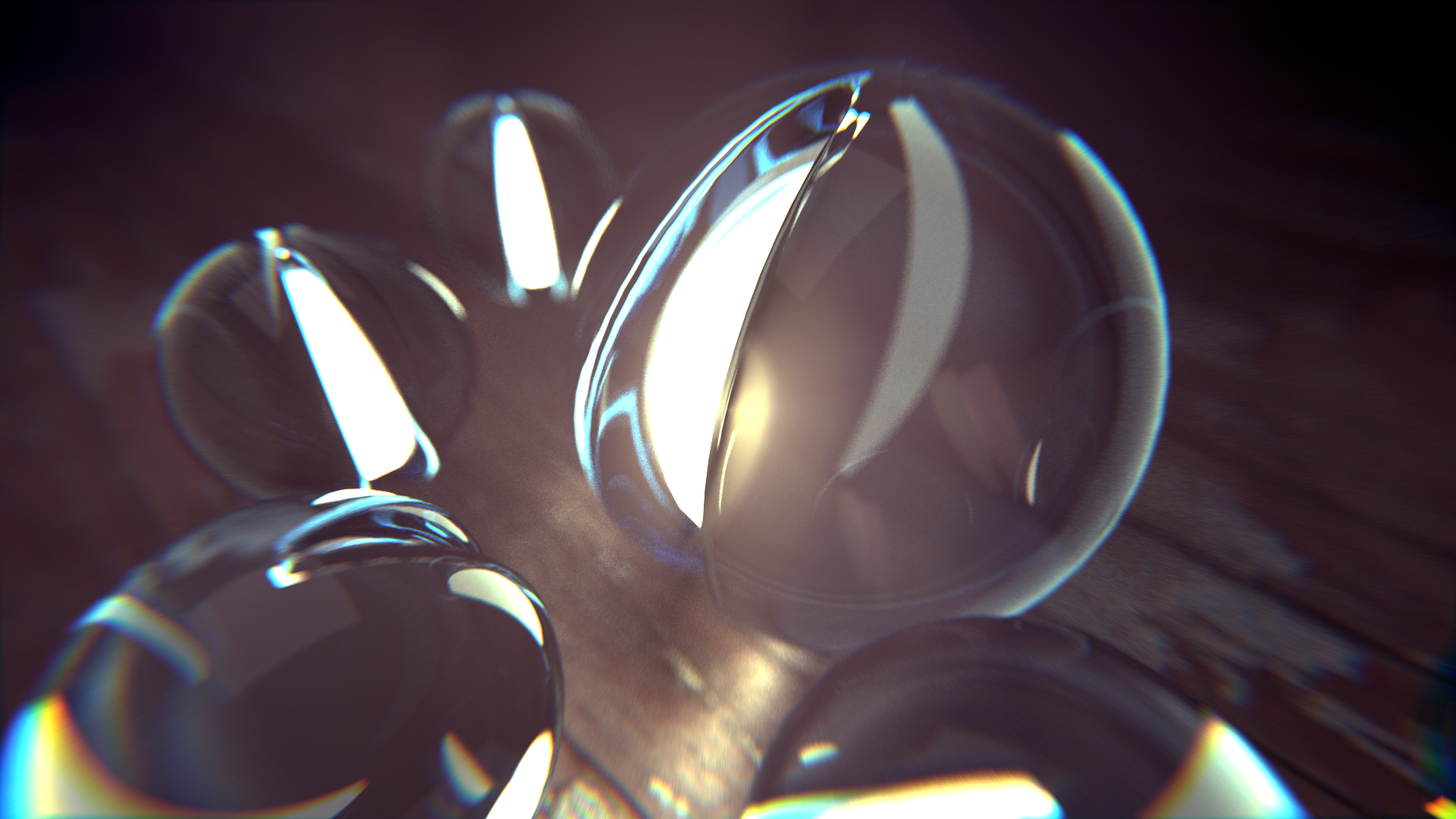 Si en los cubos lo que hice fue en el compositor de Blender añadir un poco más de contraste para emfatizarlos y sobre todo tocar algo del color balançe y en cuanto a los destellos es un simple nodo Glare con la opción streaks activada.