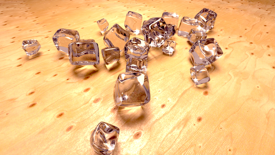 Y por último en este que ven, he utilizado softbodys para dar forma a los cubos y un material de madera de arroway, me encantan esas texturas.