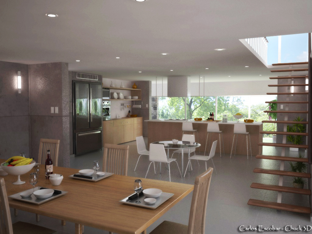 Dejo otro trabajo realizado en Cinema 4D, con Vray sobre un diseño minimalista en este caso del área de cocina.
