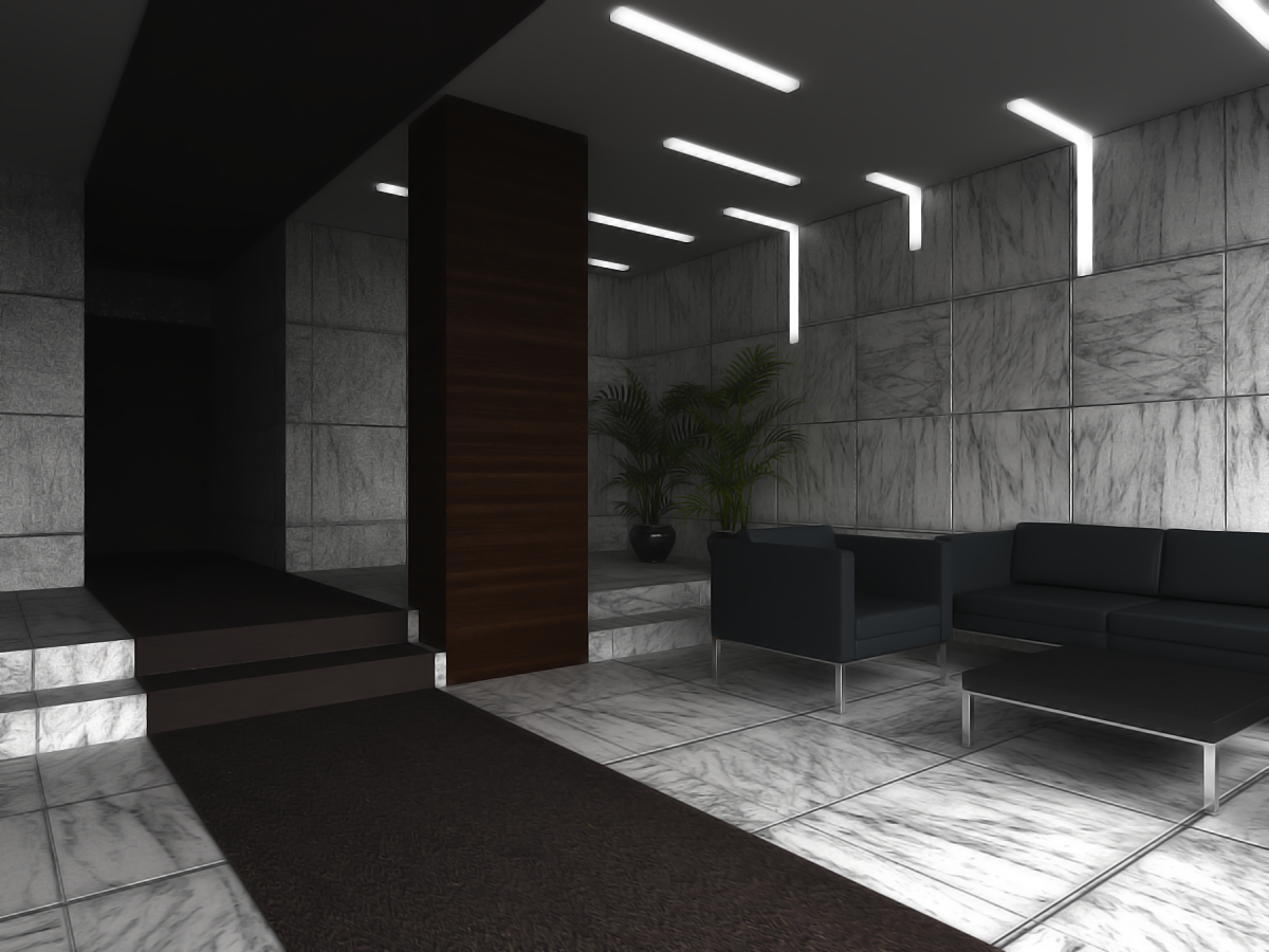 Hola. Ví tus imágenes y con total sinceridad creo que sería bueno que no des por terminado el trabajo ya que hay muchísimo por trabajar en esos espacios tan reducidos, que incluso si le descuento los bloques, más cuenta te darás de que el resto es netamente tuyo para pulir en texturas, luminosidad, sombras, reflejos, nitidez, mayor realismo etc.