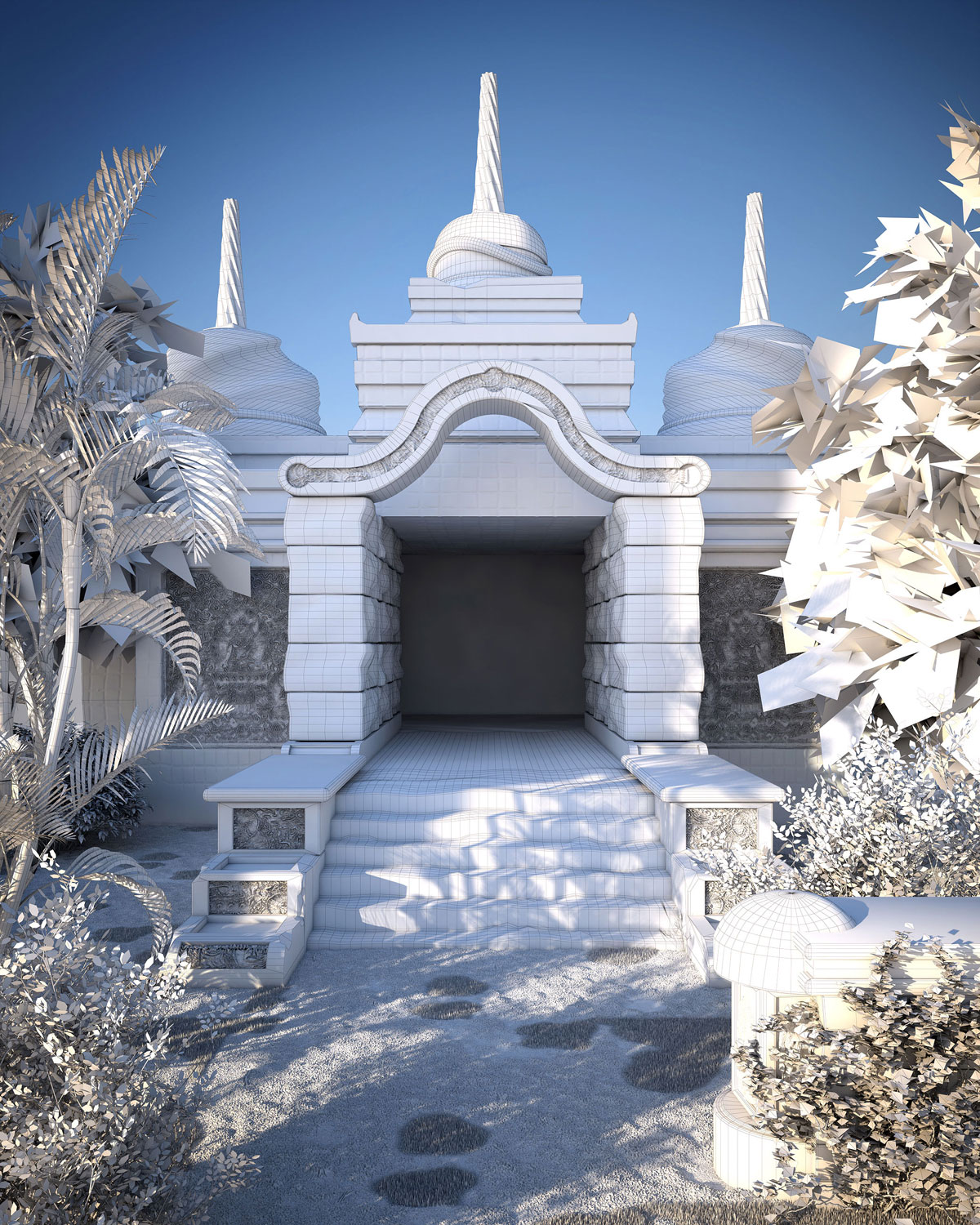 Hola a todos. Este es uno de los render que estoy creando como fondo para un juego de ipad dividido en 4 pantallas, las cuales están enfocadas en distintos continentes. Esta representa el continente asiático.