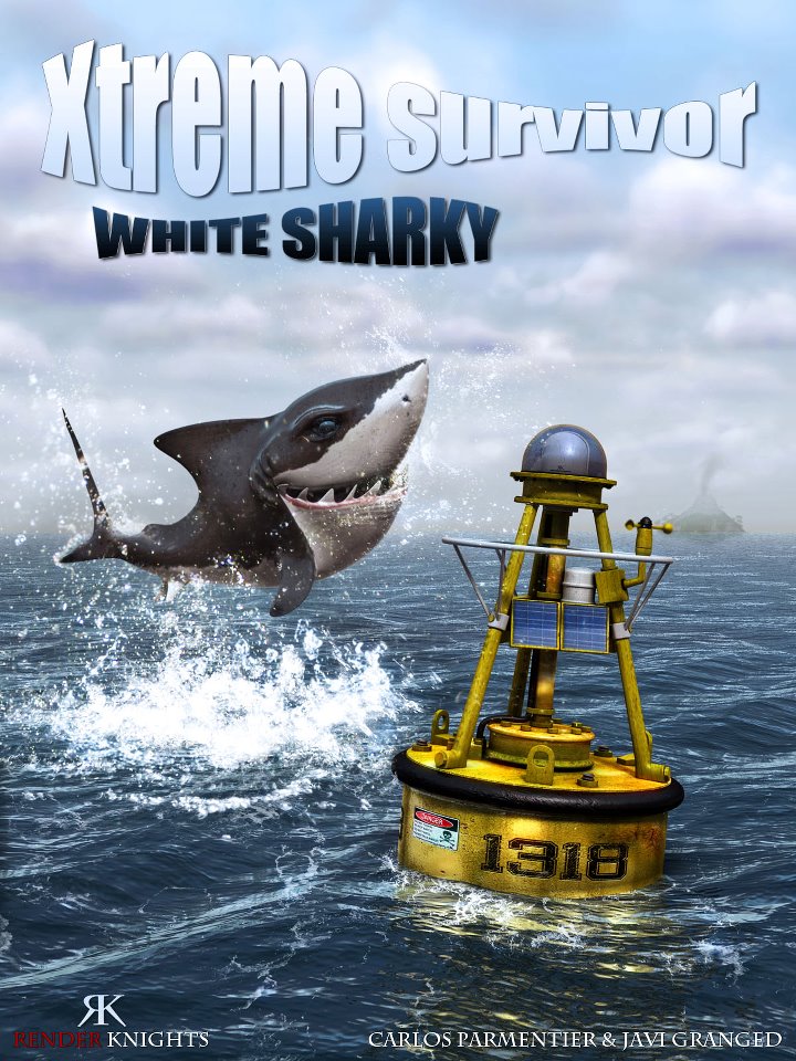 Contiene: modelo de sharky riggeado, boya completa, océano, splash, espuma, nubes, niebla suave, iluminación fakeada con Maya/Mental Ray sin GI para rapidez con Occlusion y capa de Specular, iqual ahí os dejo el wire, espero que os guste.