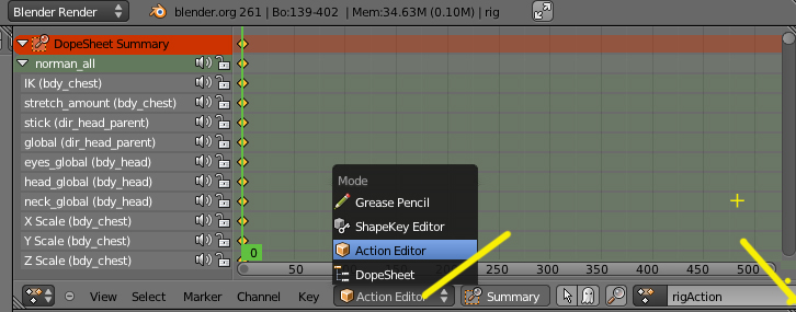 Pero en el archivo no están los controles faciales de los párpados, labios, lo siento es que estoy bastante perdido, haber seguí el tutorial de la web: http://www.ivogrigull.com/blog/?p=159 una vez he agregado el add-on desde la escena vacía de Blender añado el Rig de Norman en este sí que este el Rig completa, pero no puedo eliminar los frames de las acciones de Walk Cycle ni postura librari.