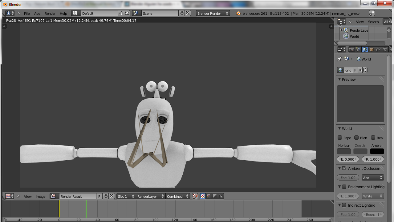 Hola, bueno es la primera vez que uso el Rig de Norman, bueno mientras hago la animación bien, pero esto es lo que se ve en la pantalla y el resultado final del render.