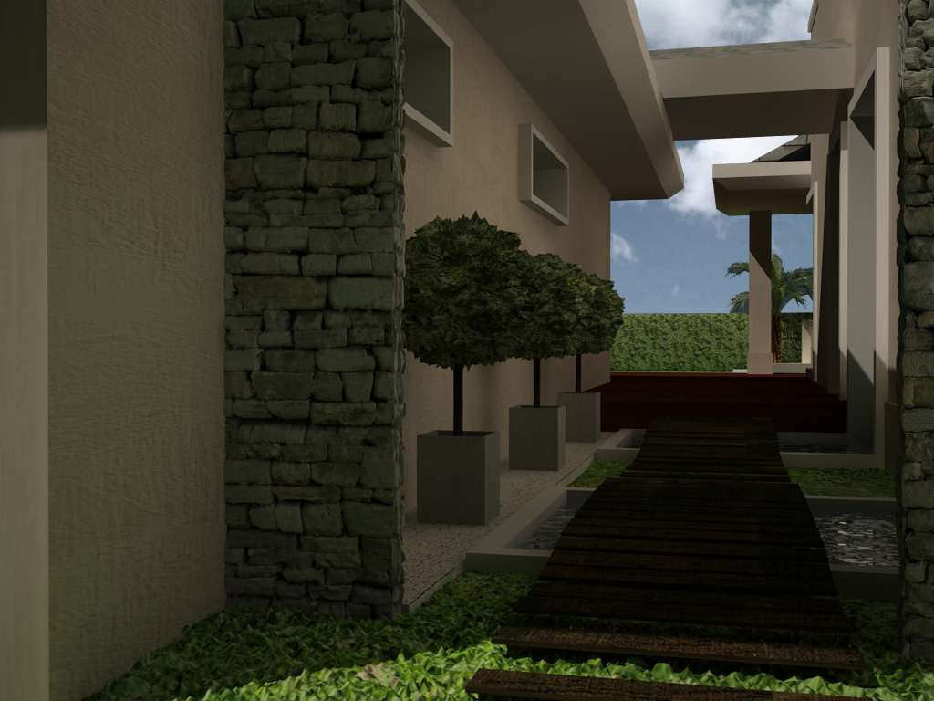 Muchas gracias por la pronta respuesta. Estoy iluminando con un Vray Sun, es cierto lo del parquet del patio trasera, pasa que no encontré una textura justa que simule un dek (tablas apenas separadas entre sí), así que, pensé modelar directamente todo el deck, veremos que hago.
