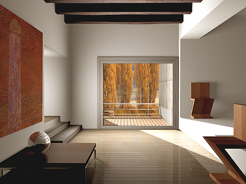 El suelo es cierto que queda muy brillante y tal vez las uniones entre las maderas queden excesivamente abiertas. Rebajando el Bump y desenfocando el reflejo quedará genial.