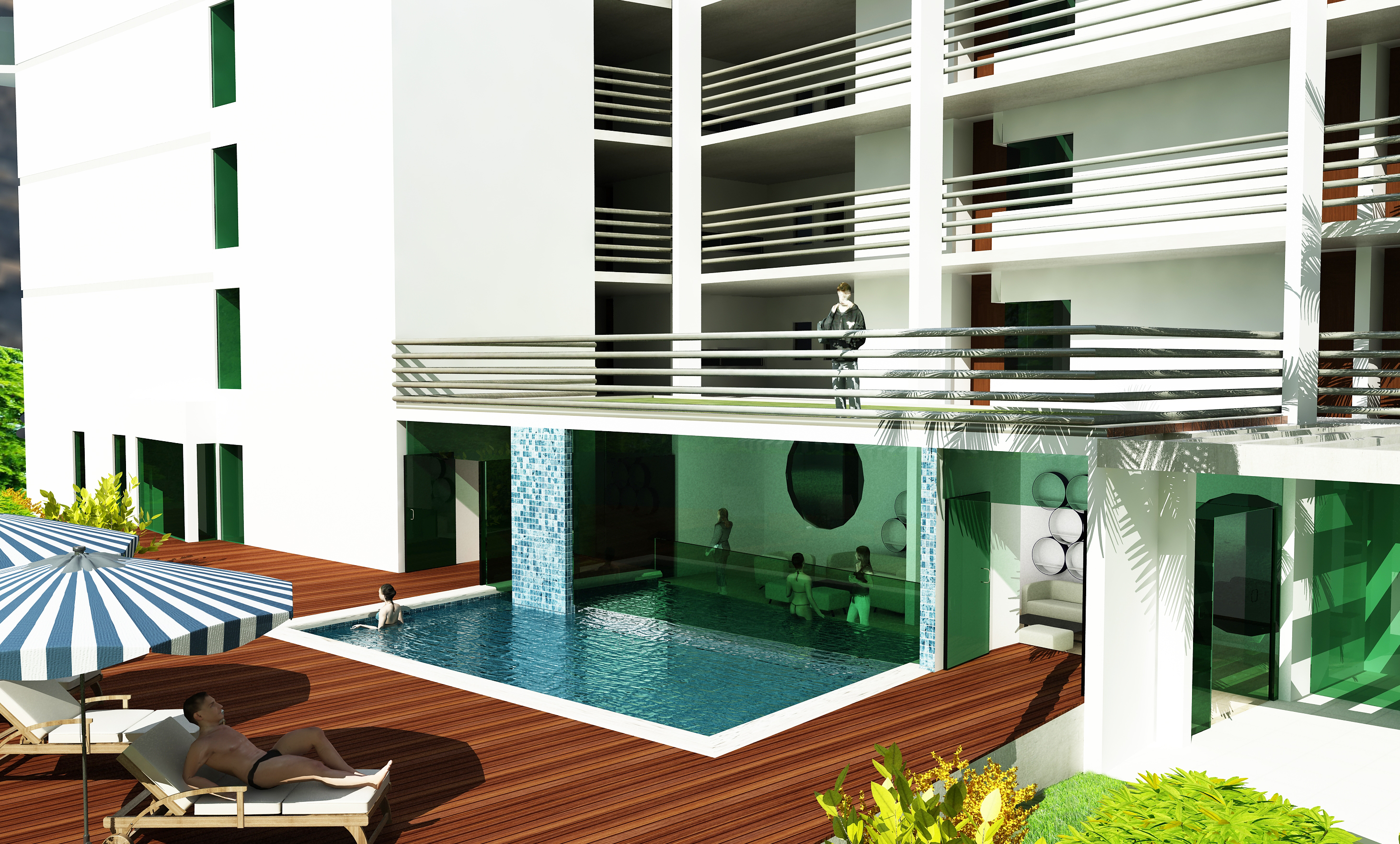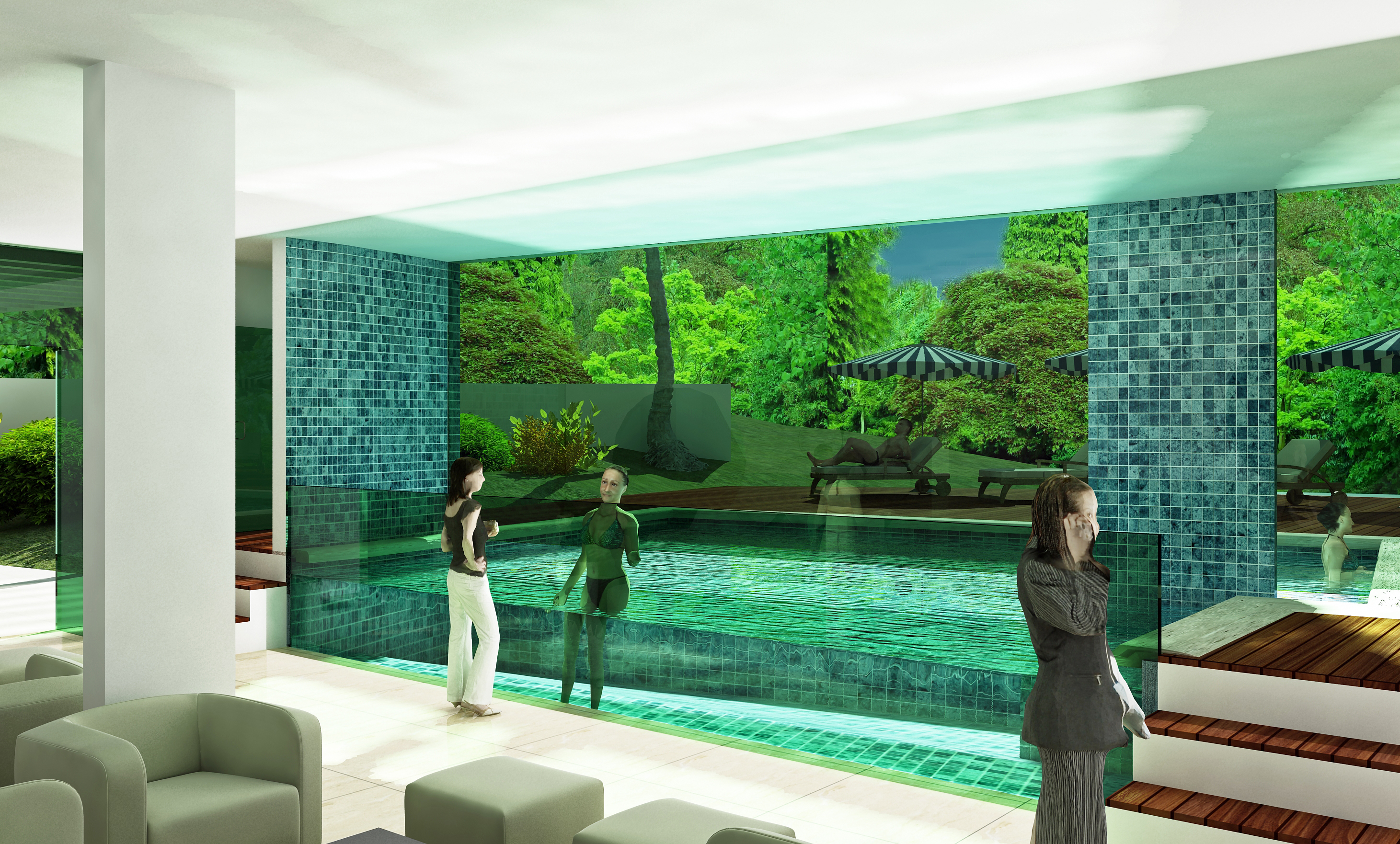 Me parece que la pared de vidrio que hace de muro de la piscina en la primer imagen no sería físicamente posible, por el largo de la misma y el volumen de agua que tendría que aguantar, se rompería.