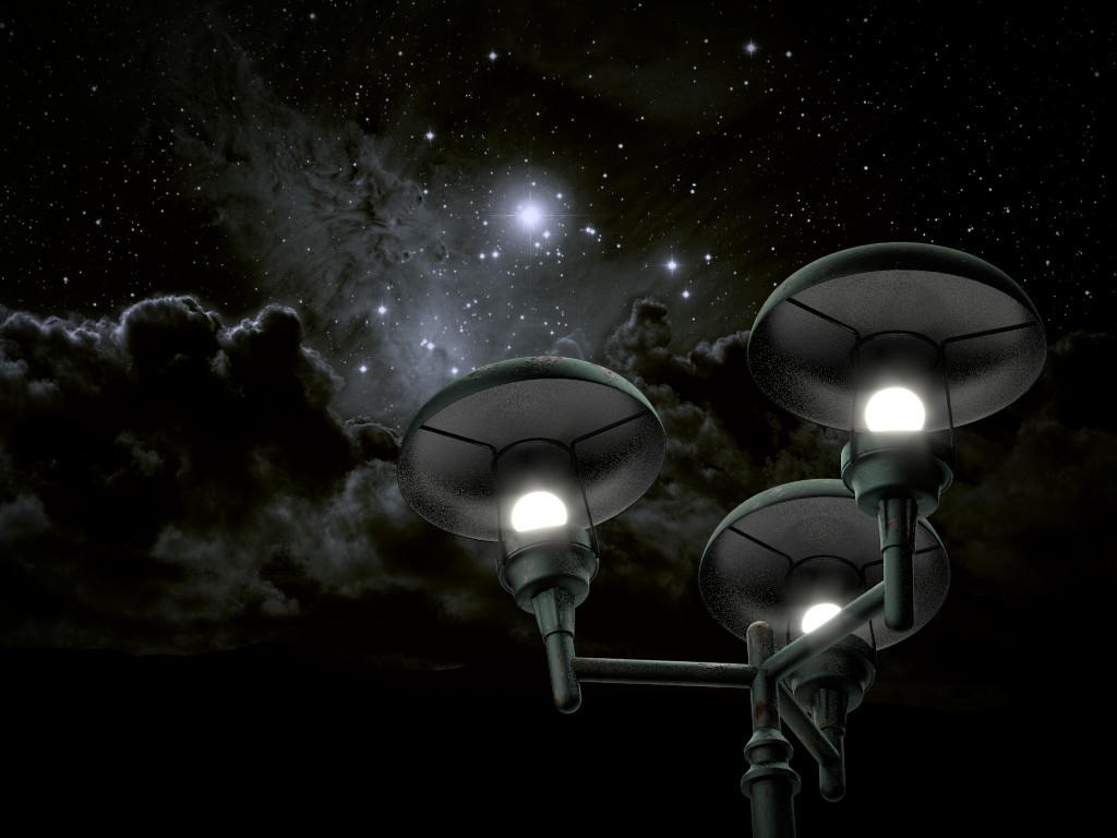 Hola a todos, les presento un trabajo que vengo desarrollando ya hace algunos días. Una farolas integradas en una cielo nocturno. En él, estoy emplando varias de las novedades de Blender 2.62.2 (2.63 beta). A saber el AO y layer mask.