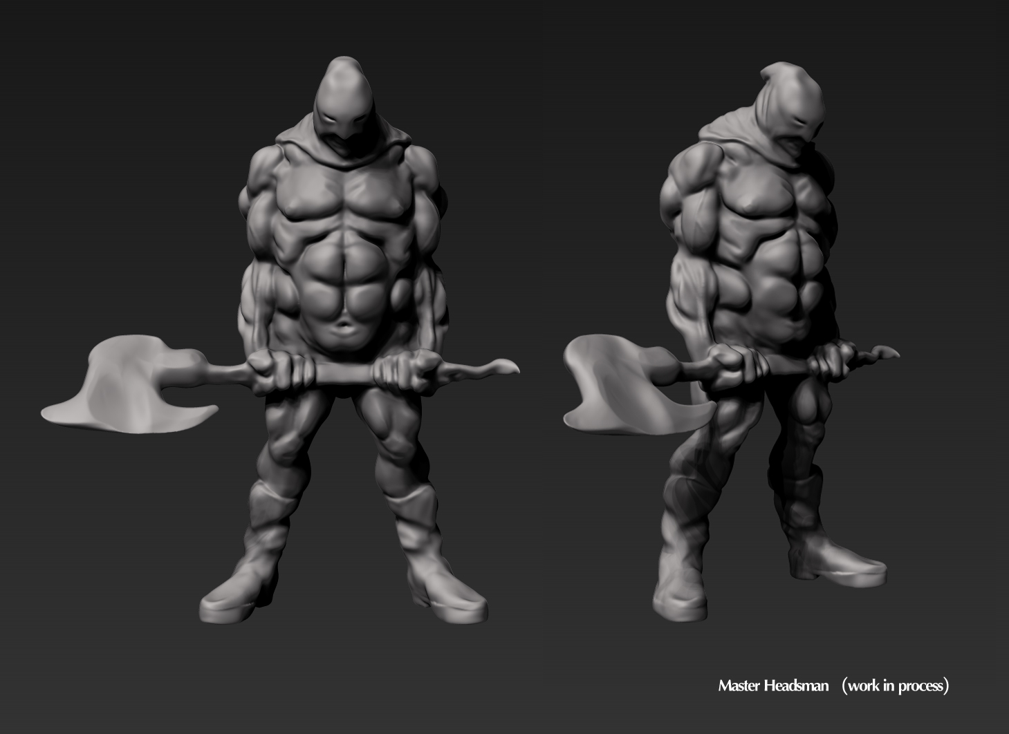 Interpretación del personaje, master headsman, del maestro Frazetta. ZBrush (work in process).