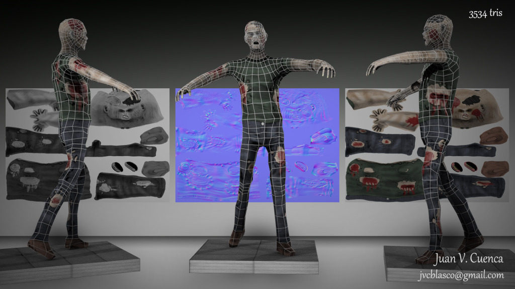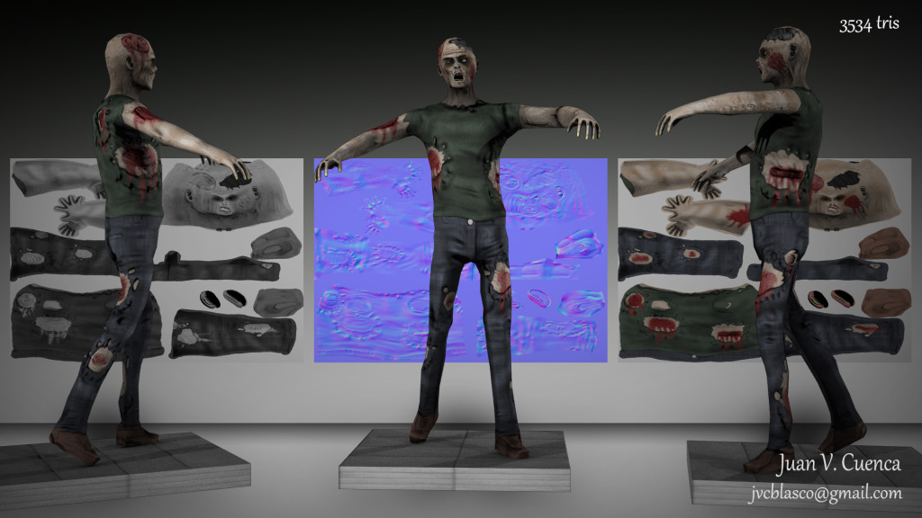 Hola. Hace unos días, terminé el nuevo personaje que estaba haciendo, es otro personaje Low poly, pero esta vez es un zombie.