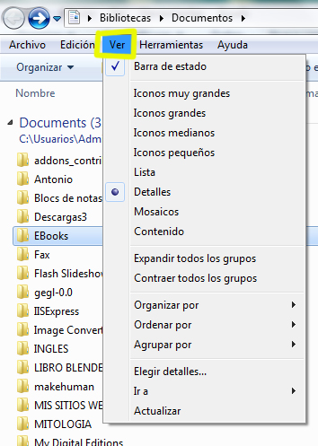 Es que es difícil de comparar la forma de comportarse, según el sistema de ventanas que le tengas seleccionado, yo no recuerdo muy bien como estaba al principio, pues estuve varios días toqueteando las diferentes formas de presentación de esas ventanas, y en Windows 7 aparte de la opción de carpetas del panel de control, tenemos dos opciones de vista muy importantes, subo dos imágenes de lo que se suele tocar, para cambiar esas vistas.