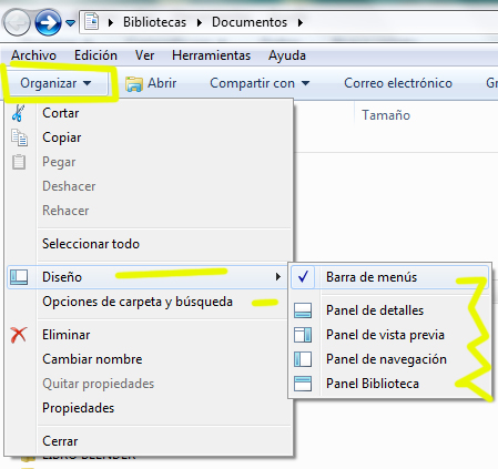 No me refiero a diseño según el comando en el explorador, organisar no. Vuelve y le mi interrugante que es la misma del amigo Acortes.