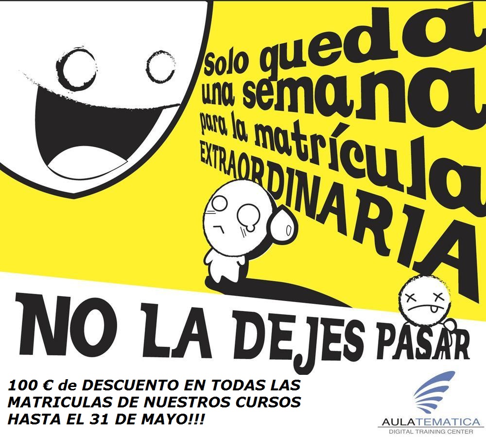 100 euros de descuento en todas las matrículas hasta el 31 de mayo. No dejes pasar la oportunidad .