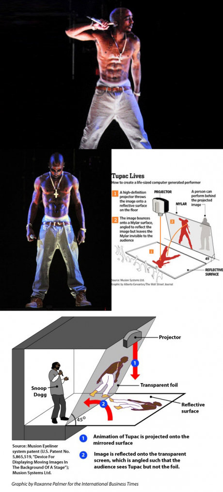 La proyección del rapero proviene de una imagen 2d manipulada con una serie de trucos que datan de 1800, para lograr el resultado que puso a 2pac en el escenario.