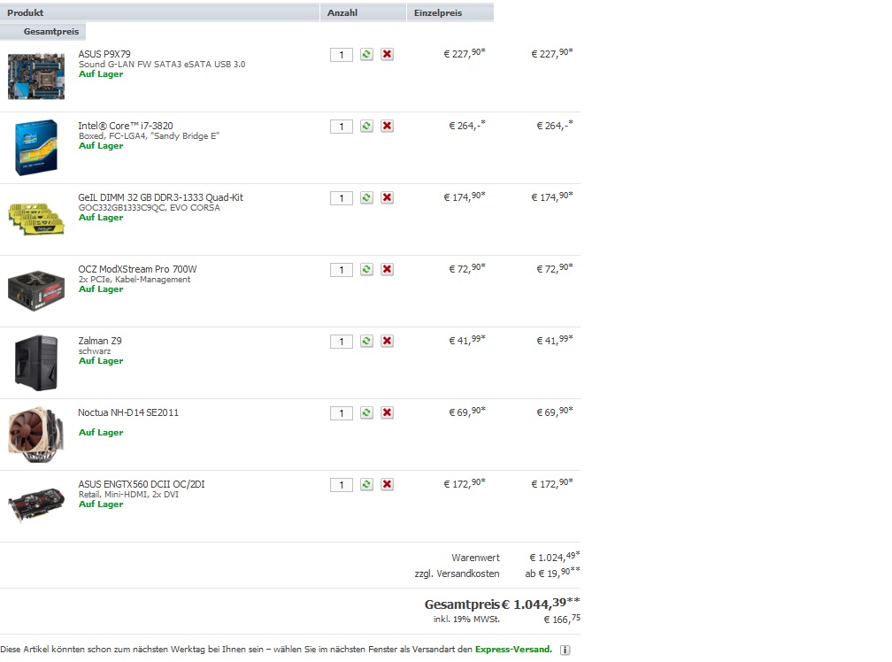 Aquí en Alemania, los precios más competitivos que he visto están en alternate (no quiero comprarlo por separado, aquí esto, aquí lo otro, no, todo en la misma tienda).