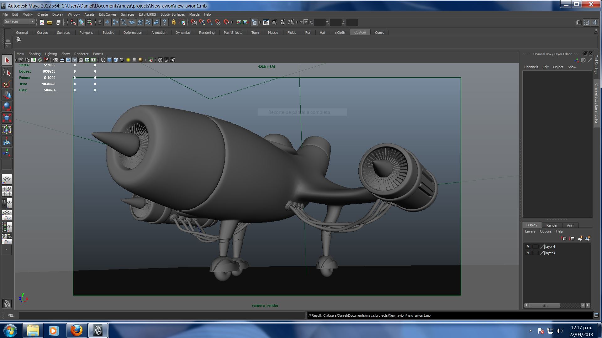 Hola, pongo el enlace a la lista de reproducción del tutorial modelado, texturizado & render de un avión en Maya 2012. Todavía estoy subiendo capítulos, pero ya vamos en el número 12 que son 3h 22m de tutorial en español. Igual dejo capturas de pantalla de cada capítulo.