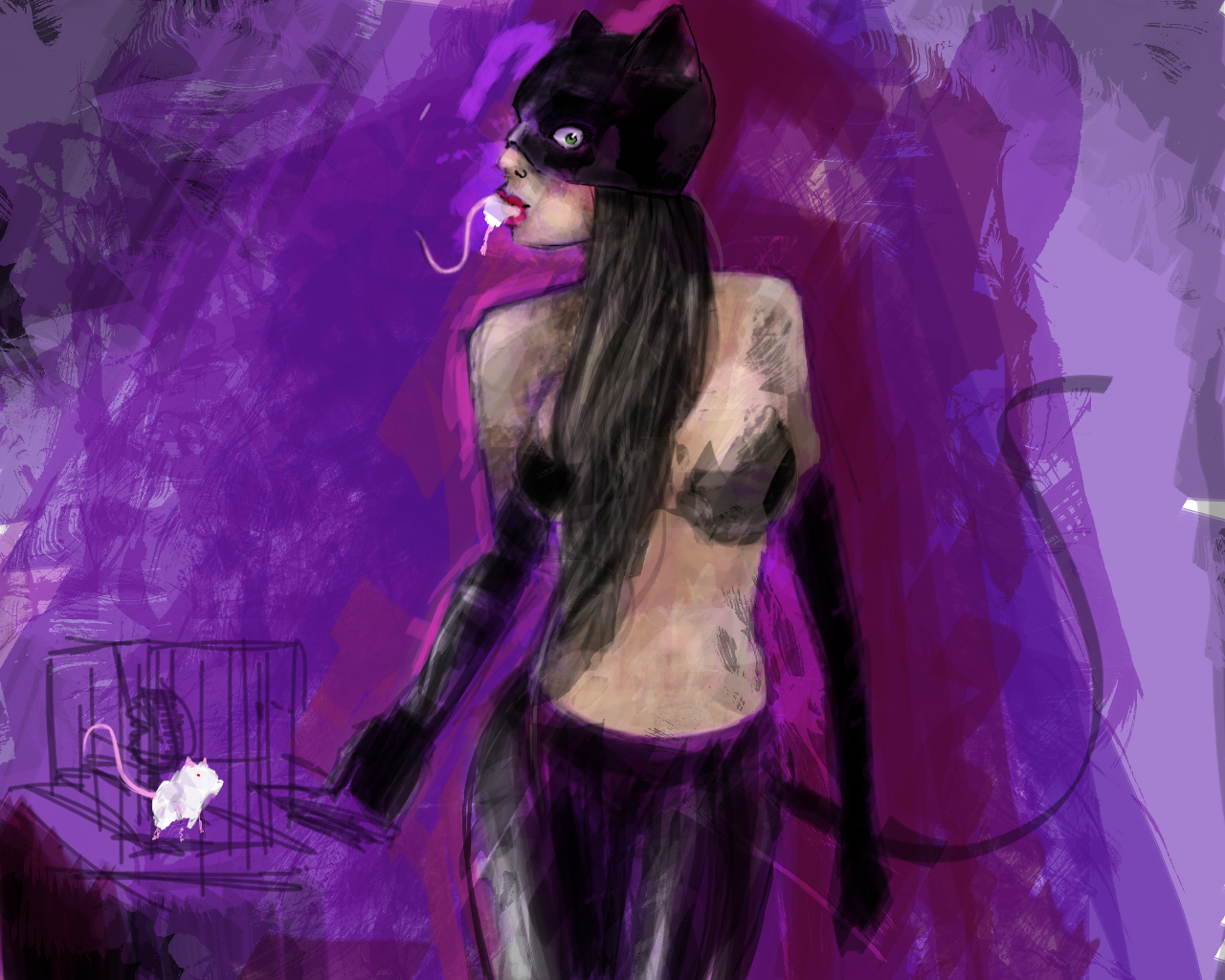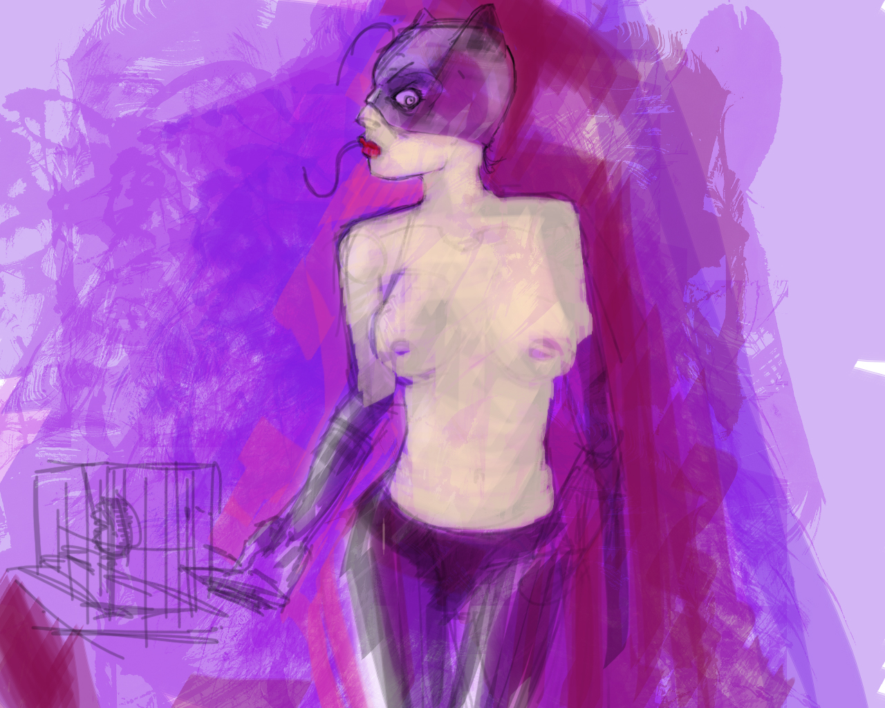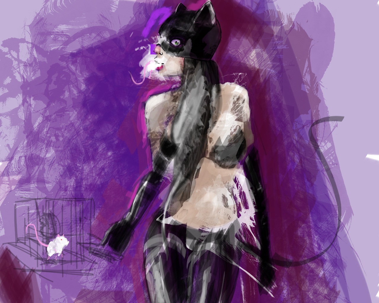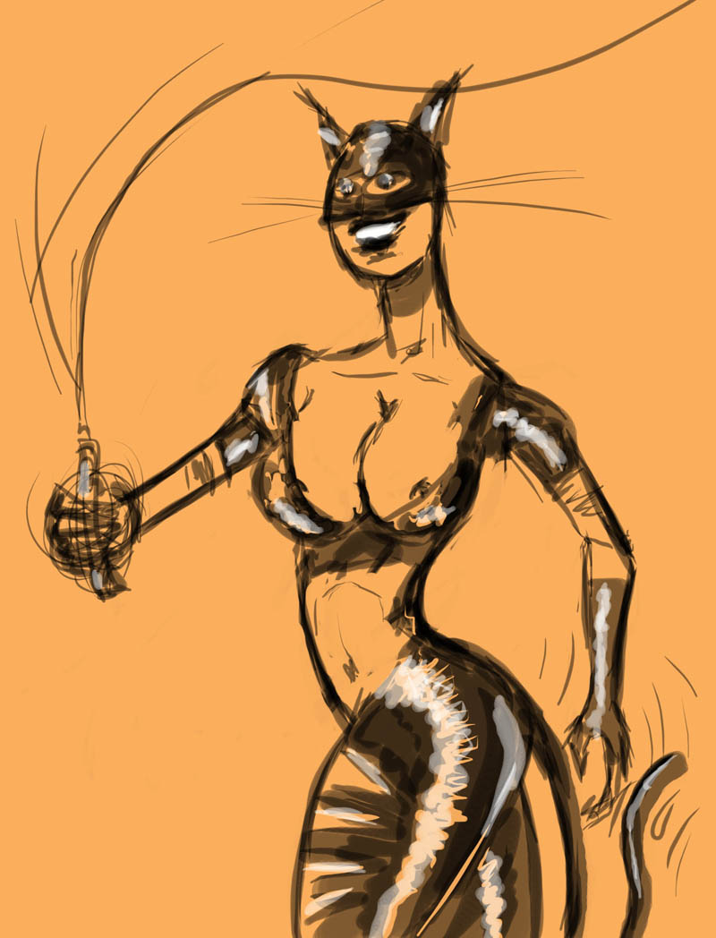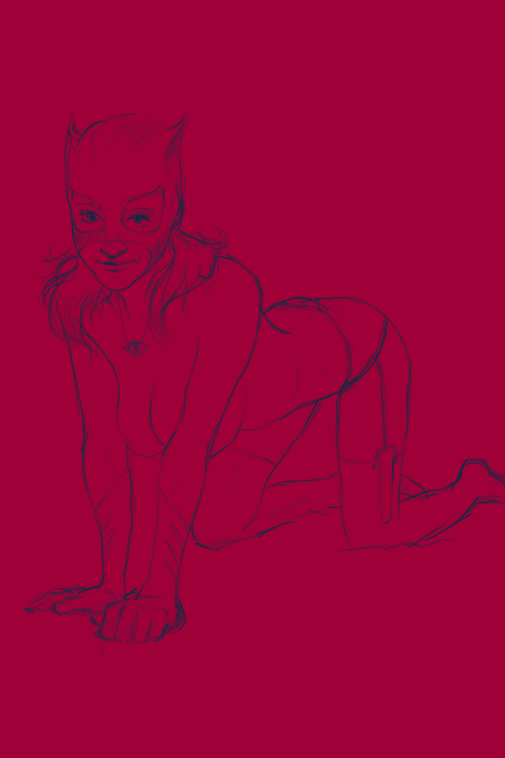 Venga lo que sea.Cat Woman con toques eroticofestivos pues, voy a hacer un pequeño esbozo ya, para ir animando el cotarro.